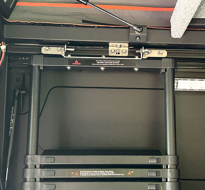 The Alu-Cab ModCAP Interior Ladder Mounting Brackets offer a sturdy and efficient solution for mounting your ladder in the unused space of your truck bed. Made from durable 1/8" stainless steel, these mounts provide quick access to your RTT ladder, maximizing your vehicle's functionality and also allowing you to use the ladder to access the bed area. The brackets are designed as a split design so that they can work around the mounting bracket that is holding on the sleeper top.