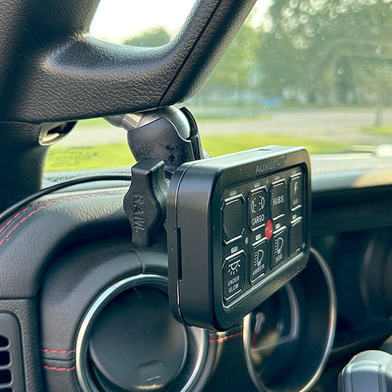 A simple solution for mounting your Auxbeam 8-Gang Switch Panel using a 1" RAM Ball.