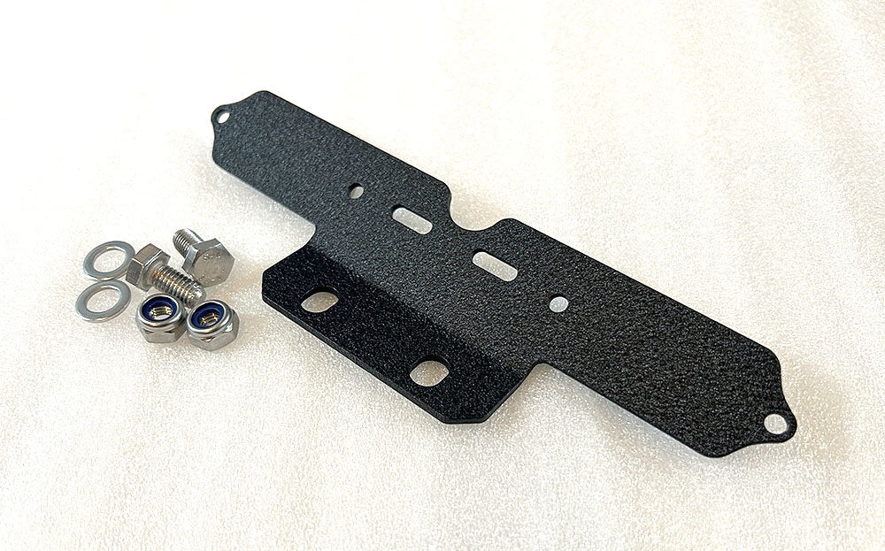 The bracket is made from aluminum and powder coated in black a texture coating. It includes stainless steel mounting hardware.