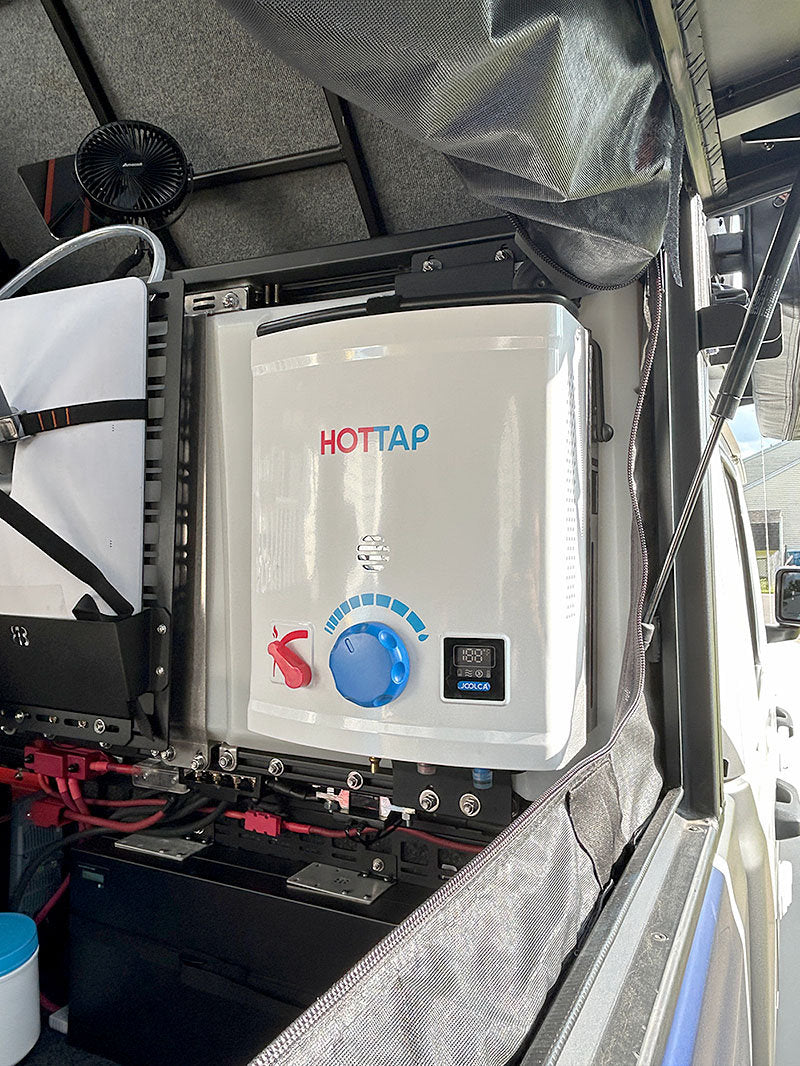 The Hot Water Tank Bracket fits full0size and mid-size Alu-Cab Camper / ModCAP with bulkhead water tank installed. The bracket mounts over either of the three existing mounting brackets for the Alu-Cab Camper / ModCAP water tank. No extra mounting brackets are required. The bracket mounts using the four bolts that are holding the stainless tank bracket in place. The Hot Water Tank Bracket comes with four M8x25mm bolts in case you need longer bolts to mount the bracket.