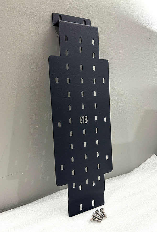 The Hot Water Tank Bracket is made from 1/8" black powder coated aluminum.