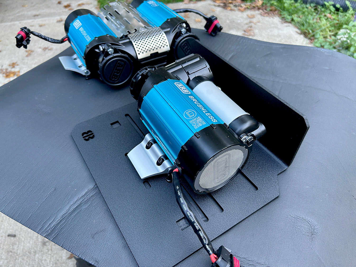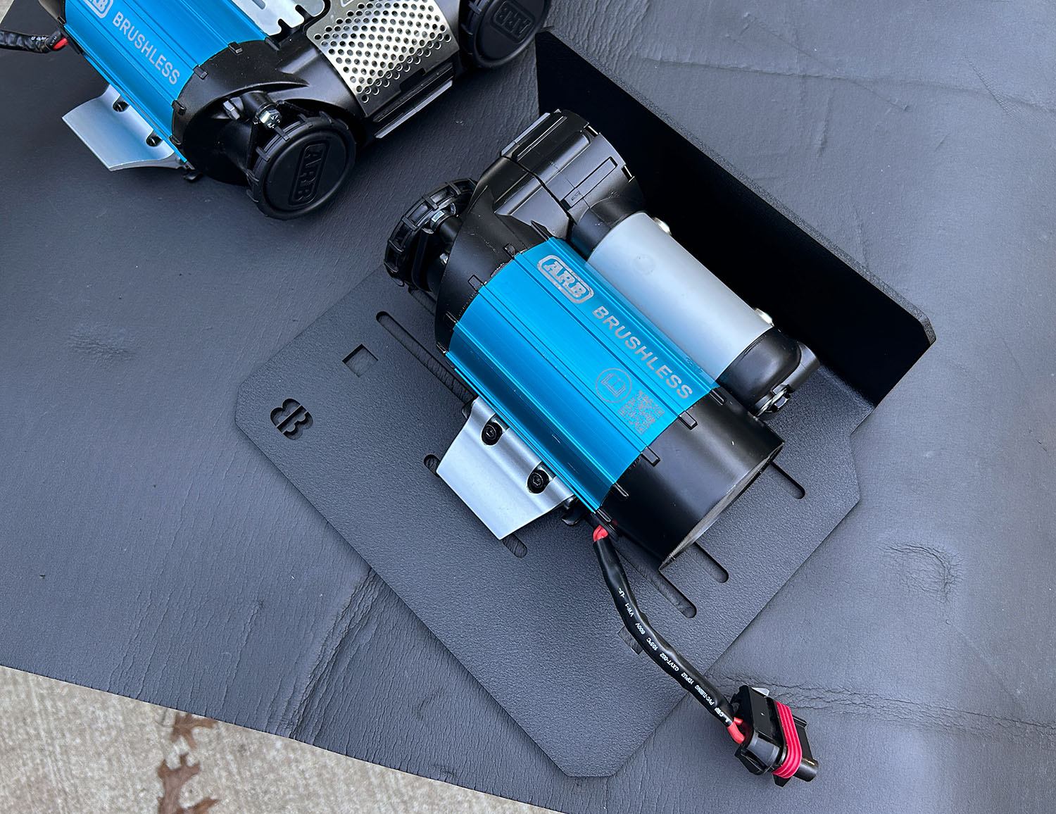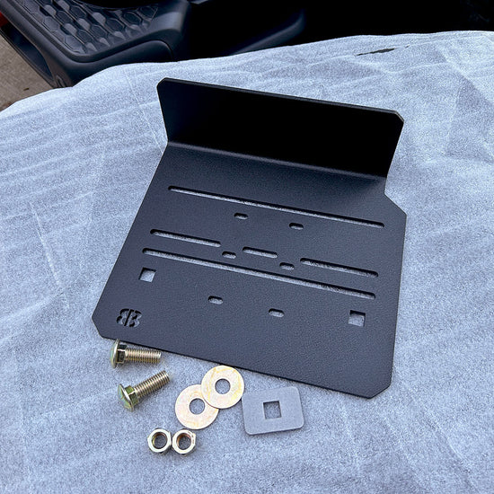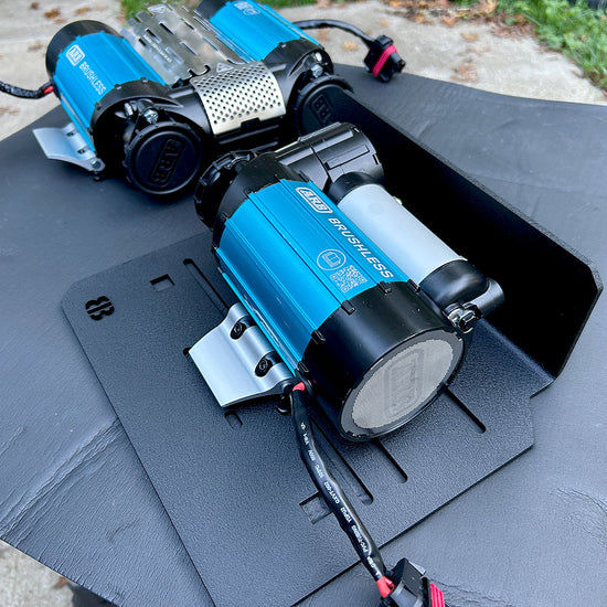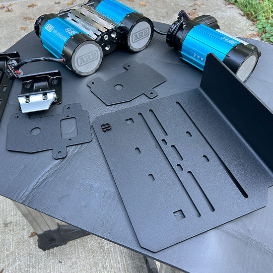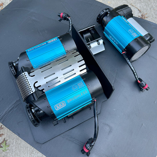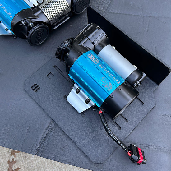 Designed to mount the ARB Twin / Single Brushless Compressors, the ARB Classic Single and most ViAir Compressors. The mount DOES NOT work with the ARB Classic Twin Compressor. There is not enough height for the Classic Twin to fit. The compressor mounts above the spare tire cross member on the Jeep Gladiator. The mount is made of 4.7mm / .187" black texture powder coated aluminum for extra strength. The mount has a built-in shield to help protect the compressor.