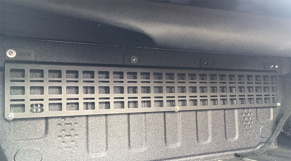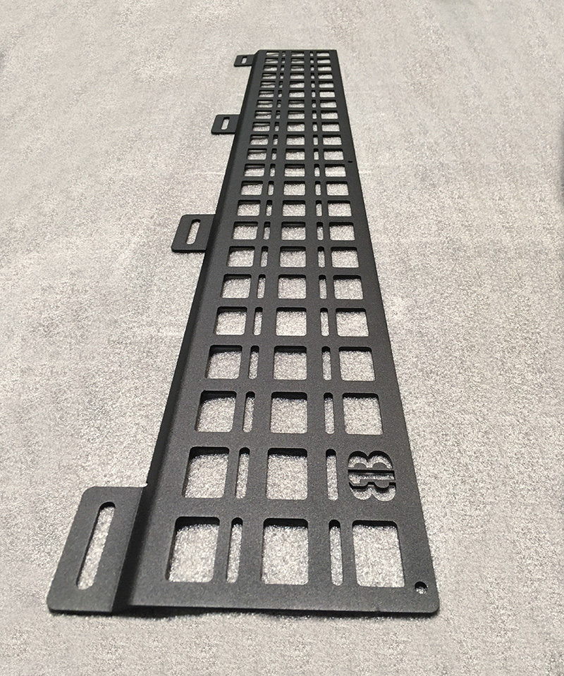 Jeep Gladiator Aluminum Upper Cab Side MOLLE panel Only. Our new Cab Side MOLLE panels are modular and can work as a single upper panel or as two panels to form a full setup. This is the upper panel ONLY.