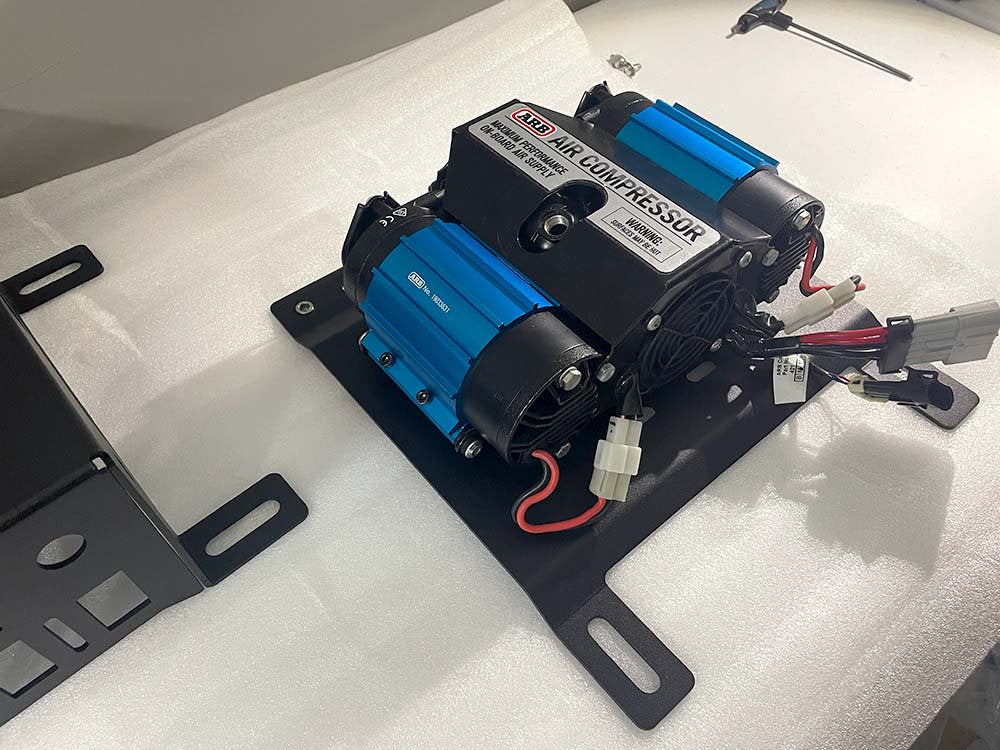 Designed to fit the ARB Twin or single compressors. Could also fit a ViAir compressor but may need a few extra holes drilled. Mopar Trail Rails, aftermarket rails or even Unistrut DIY rails are required for no drill installation on the Jeep Gladiator. Right or Left side compatible. This mount will also work for other custom installations as it has a more flat base and is open to more location mouting. It can be mounted to most flat surfaces.