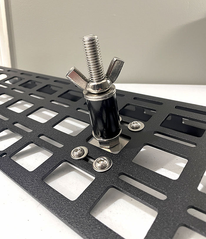 Hi-Lift jack mounts designed exclusively for our Bed Side or Cab Side MOLLE panels. This hi-lift mount will work with any of our Bed-Mounted MOLLE panels. Mount up to a 48" jack. These mounting plates would required customization to work with other brand MOLLE panels as they are spaced specifically for our panels. These mounts may or may not work with other brand MOLLE panels.