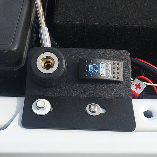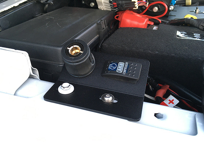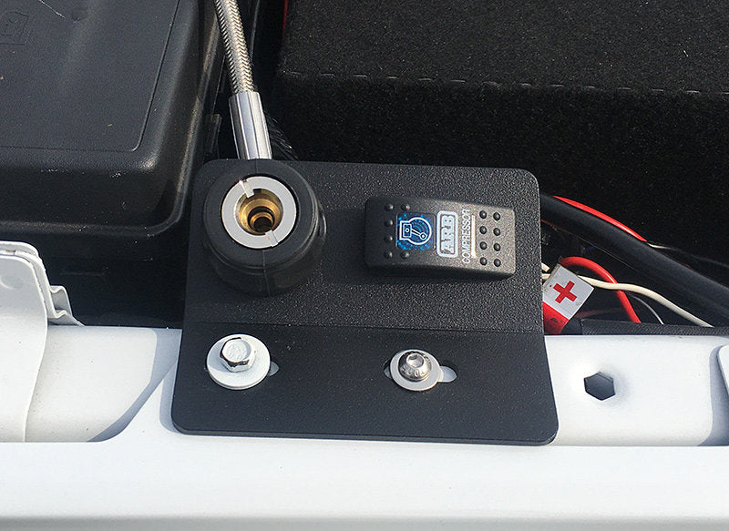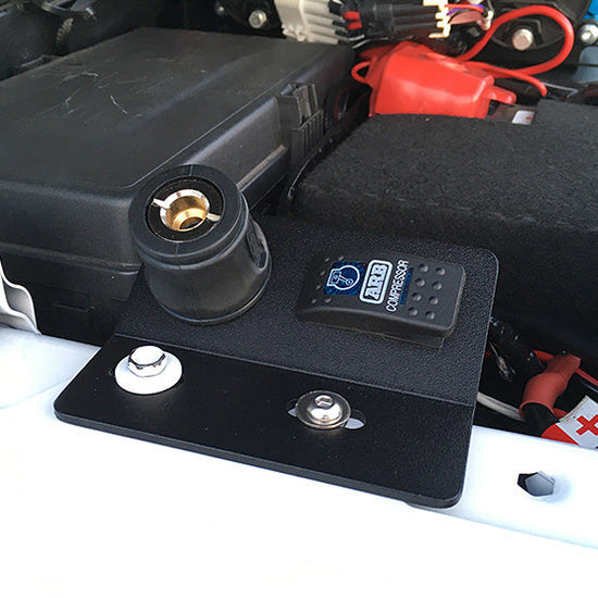 Designed to mount the ARB Rocker Switch and ARB JIC-4 air coupler on the left or right front fender under the hood. Fits Jeep Gladiator & Jeep JL with 3.6L Engine. Included with the kit are: Rocker Switch / Air Coupler plate and mounting hardware for left or right fender.