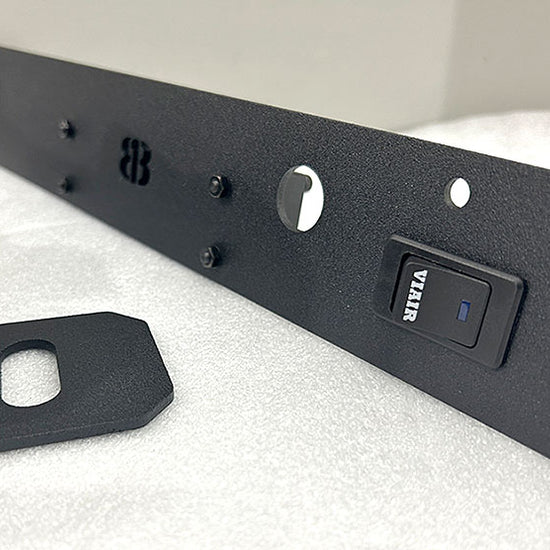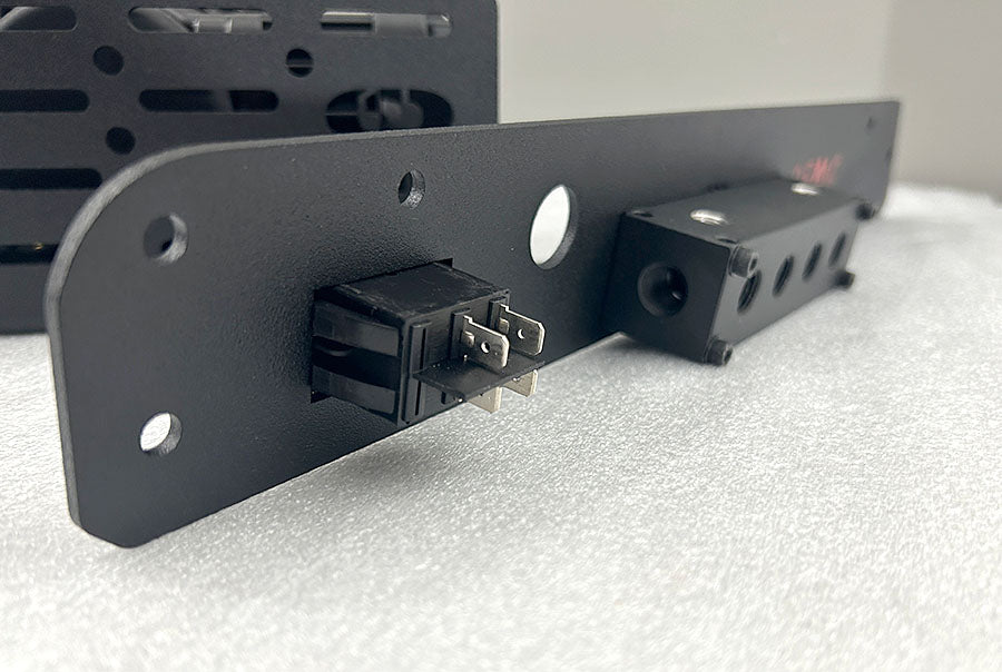 Designed to fit the front passenger or driver side seat rail of the Jeep JL and Jeep Gladiator. The Full Length Front Seat Rail Plate is designed for mounting the ViAir VMS Manifold, the ARB JIC-4 air coupler (or any air coupler using an optional bulkhead fitting) and ViAir rocker switch. The plate is made of .125" (1/8") powder coated aluminum for strength. Drilling is required on the seat rail to mount the plate.