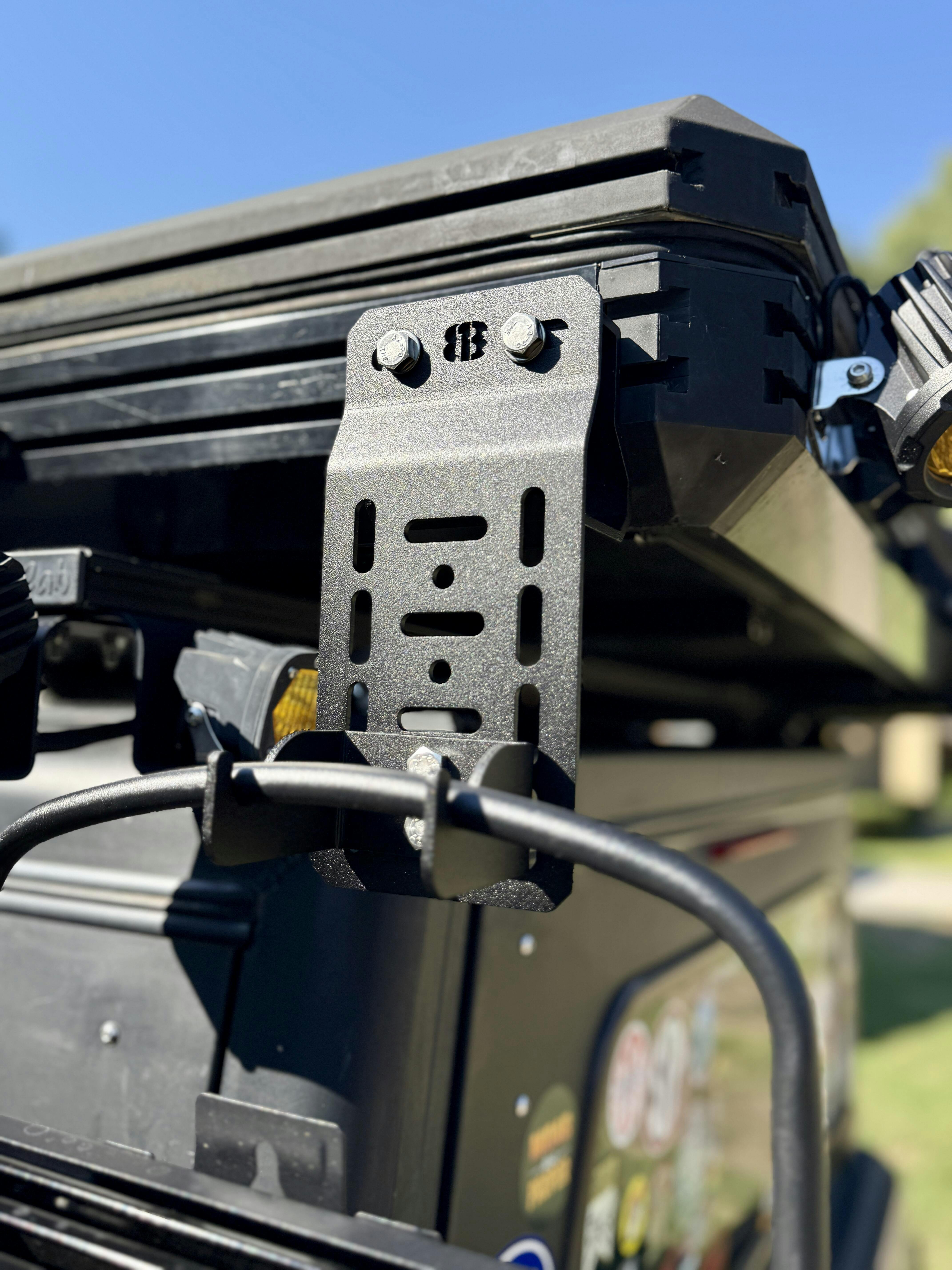 Stainless Steel Bed Rail Mounting Plates. Made from 1/8" black powder coated stainless steel for strength. We have a short and long version. The short version is meant to mount about the wheel well. With the long version, the hole pattern allows adding a RotopaX mount vertically or horizontally.