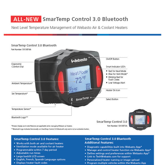 **The intended market for Webasto heaters and Webasto heater kits is for the on-highway and off-highway markets. This excludes Marine applications. For Marine applications, please contact Webasto directly 1-800-860-7866**